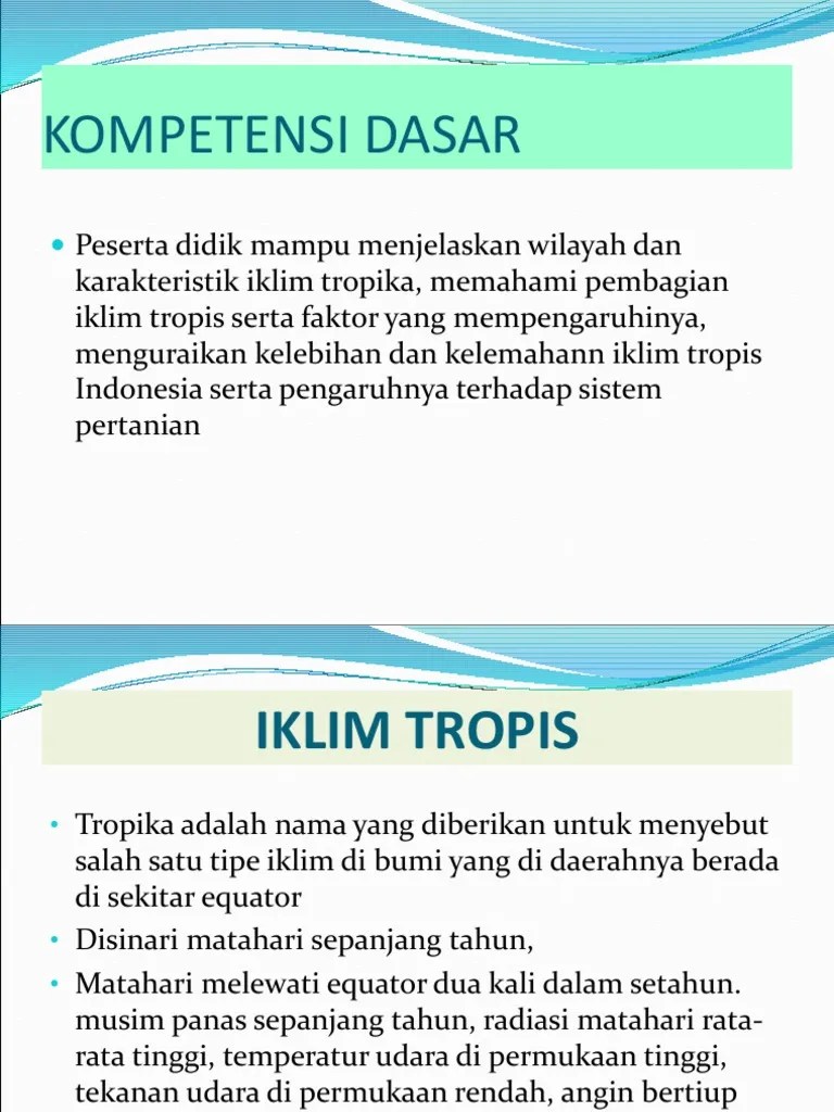 Ciri iklim tropis adalah suhu udara yang tinggi sepanjang tahun yaitu.